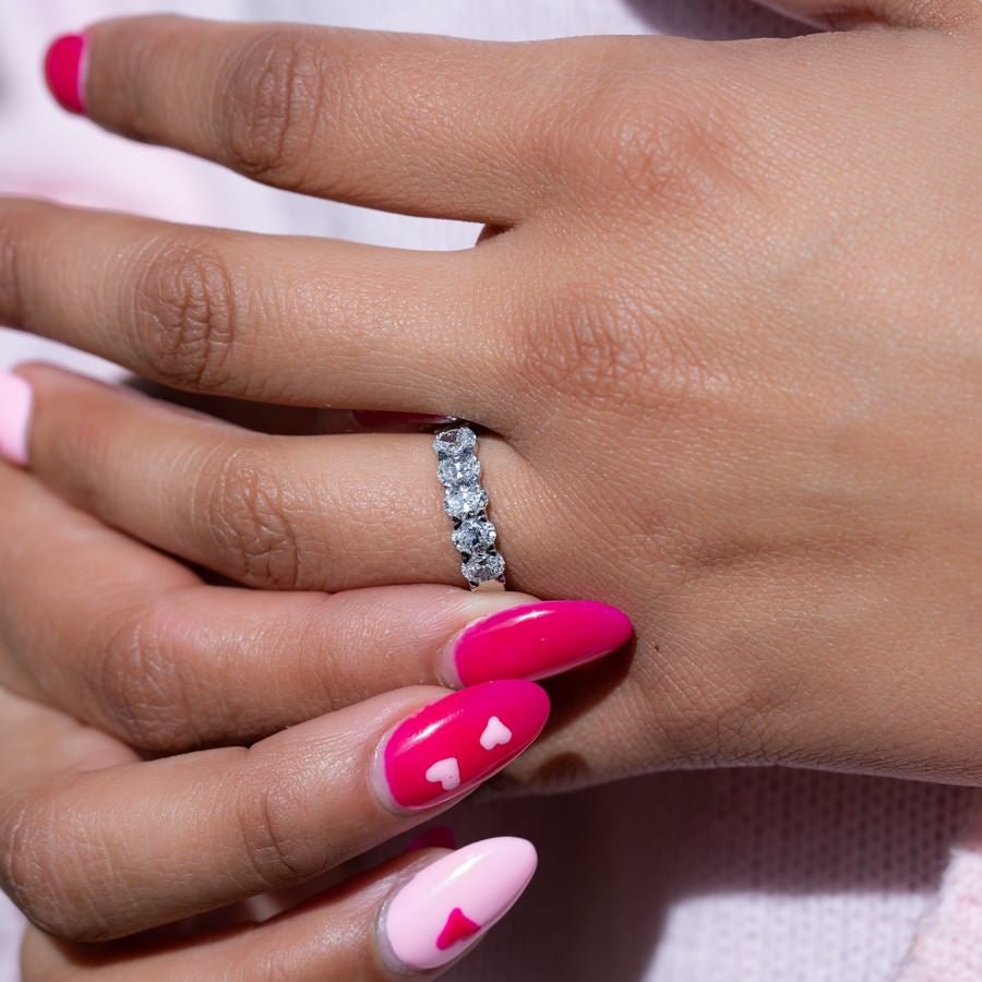 Dazzling presence: A full 1.20ct total across five oval diamonds for maximum finger coverage.