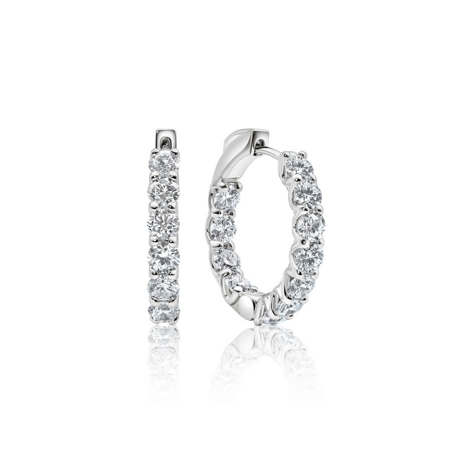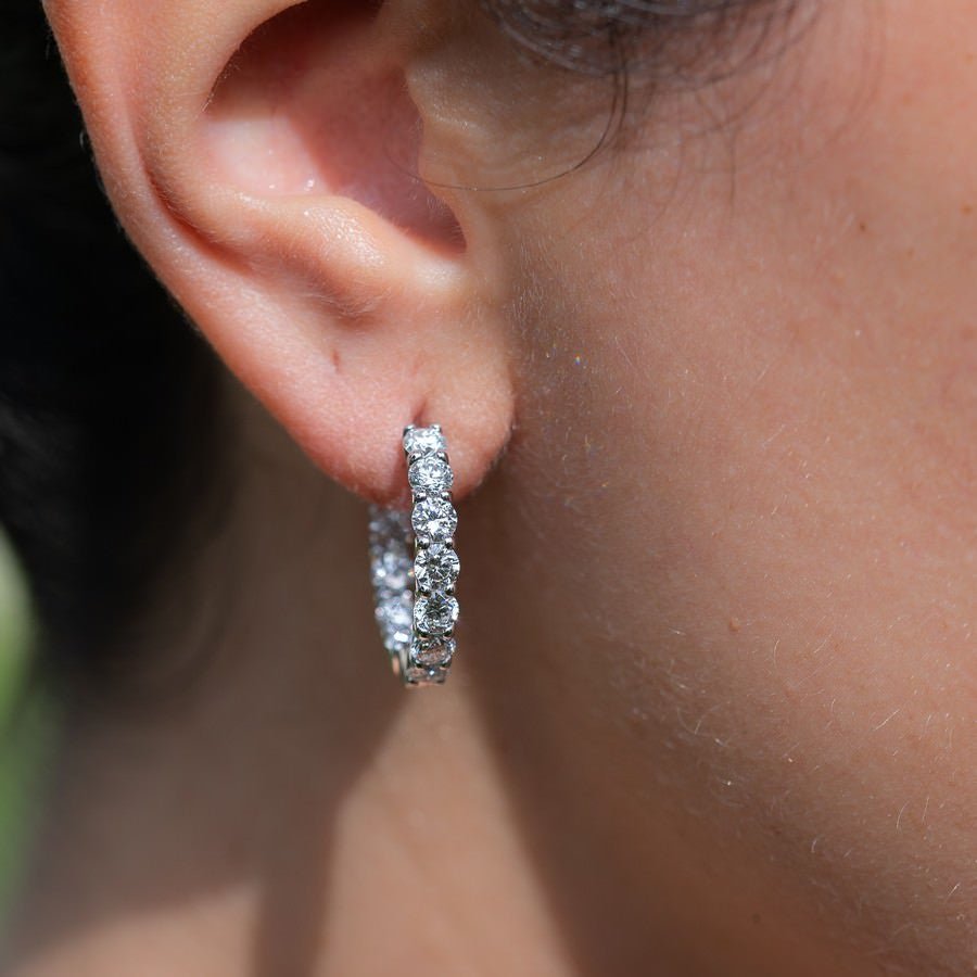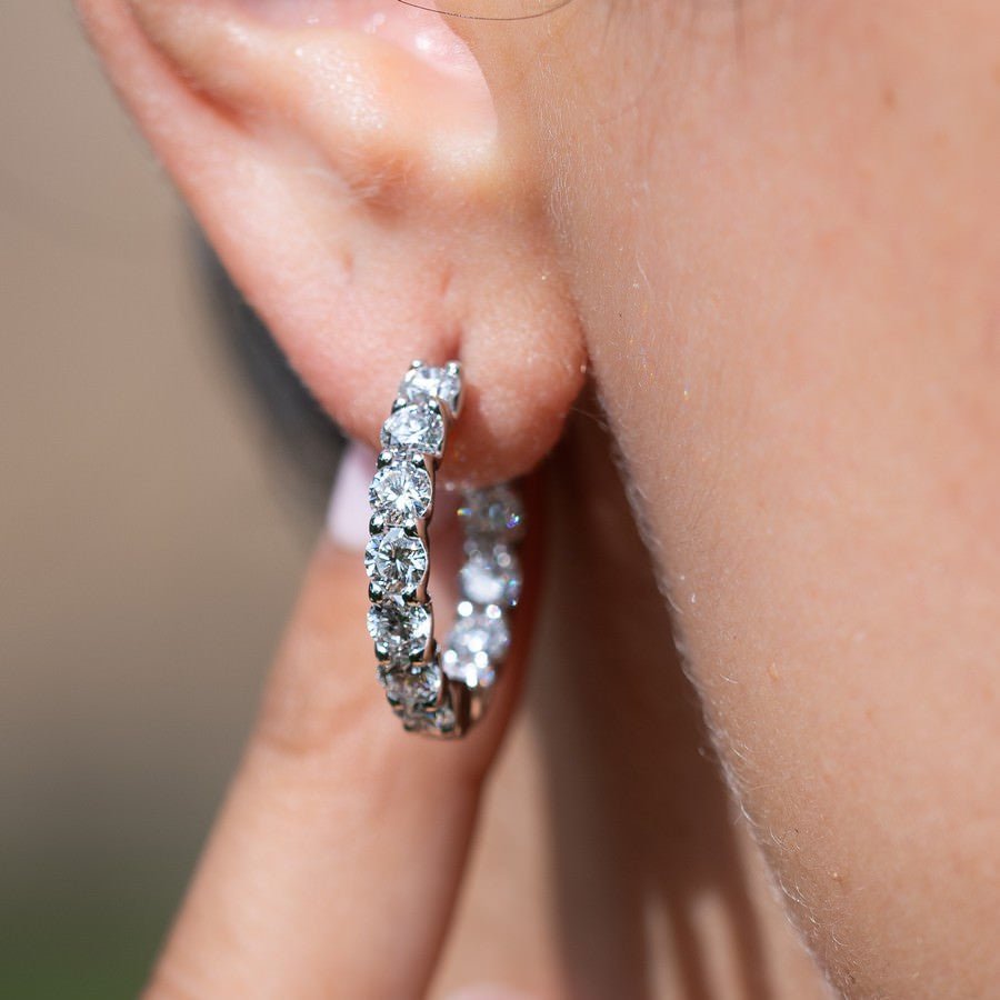 Everyday luxe that actually shines. These 15mm huggies are hand-set with brilliant lab-created diamonds (3.5 carat total weight, F-G colour, SI clarity) in solid 14K white or yellow gold for a clean, high-sparkle finish that hugs the ear comfortably—perfect from coffee runs to black-tie.