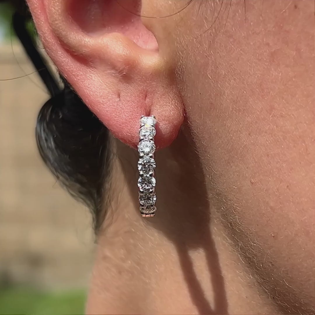 Elevate your daily jewellery rotation with these classic 15 mm huggie earrings crafted in solid 14K white gold and set with premium lab-created diamonds. With a total of 3.50 carats per pair (F–G colour, SI clarity), each hoop delivers brilliant sparkle in a sleek, wear-everywhere profile. A smooth hinged design and secure click-lock closure make them effortless to put on and comfortable all day—perfect from school run to date night.