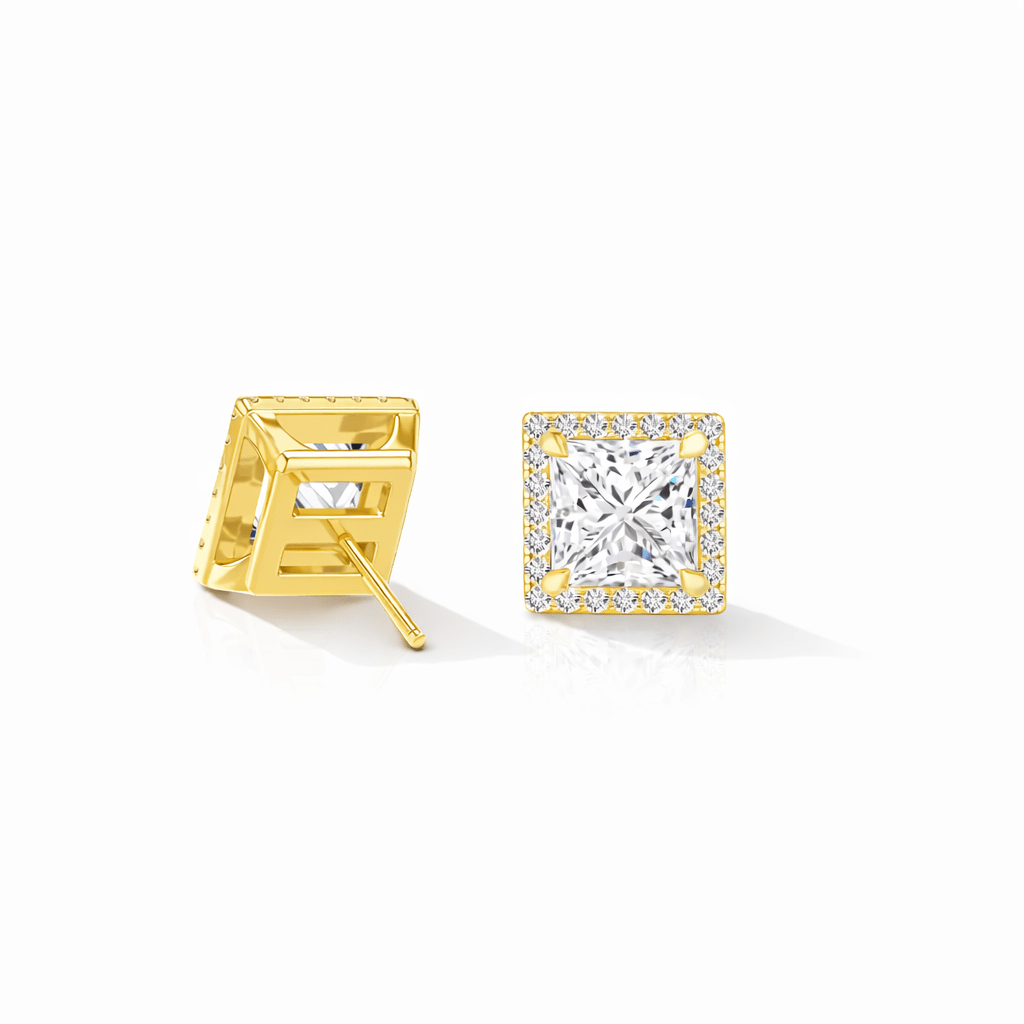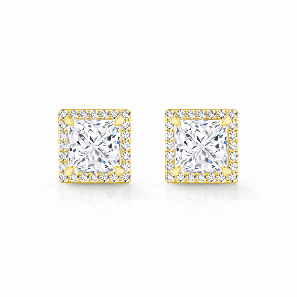Olite — Princess Shape Halo Stud Earrings 14K Yellow Gold 2 CTW