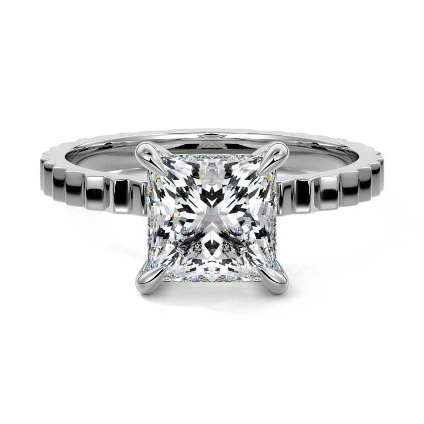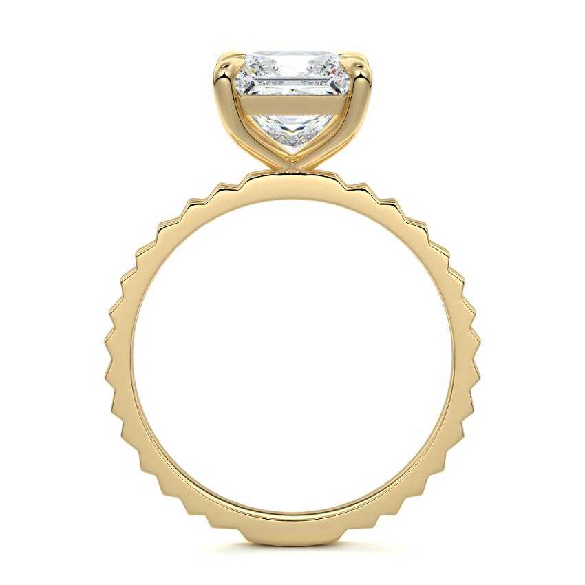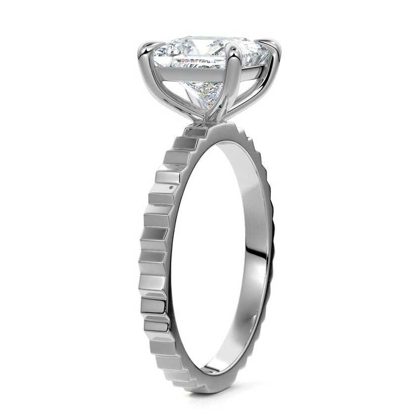 Textured band designs introduce individuality while preserving the elegance of a solitaire setting. When paired with a princess-cut diamond, the result is a modern yet timeless engagement ring.