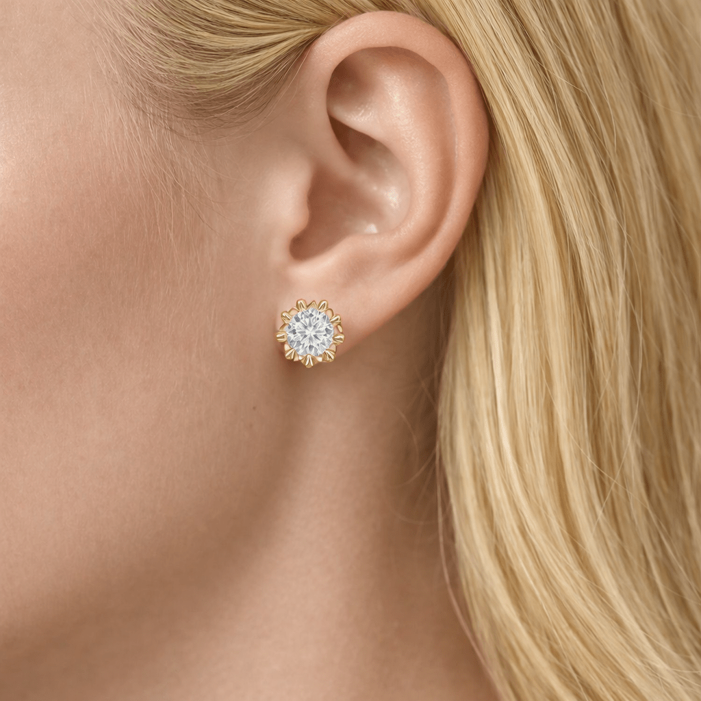 Tulip — Moissanite Stud Earrings in 14K Yellow Gold