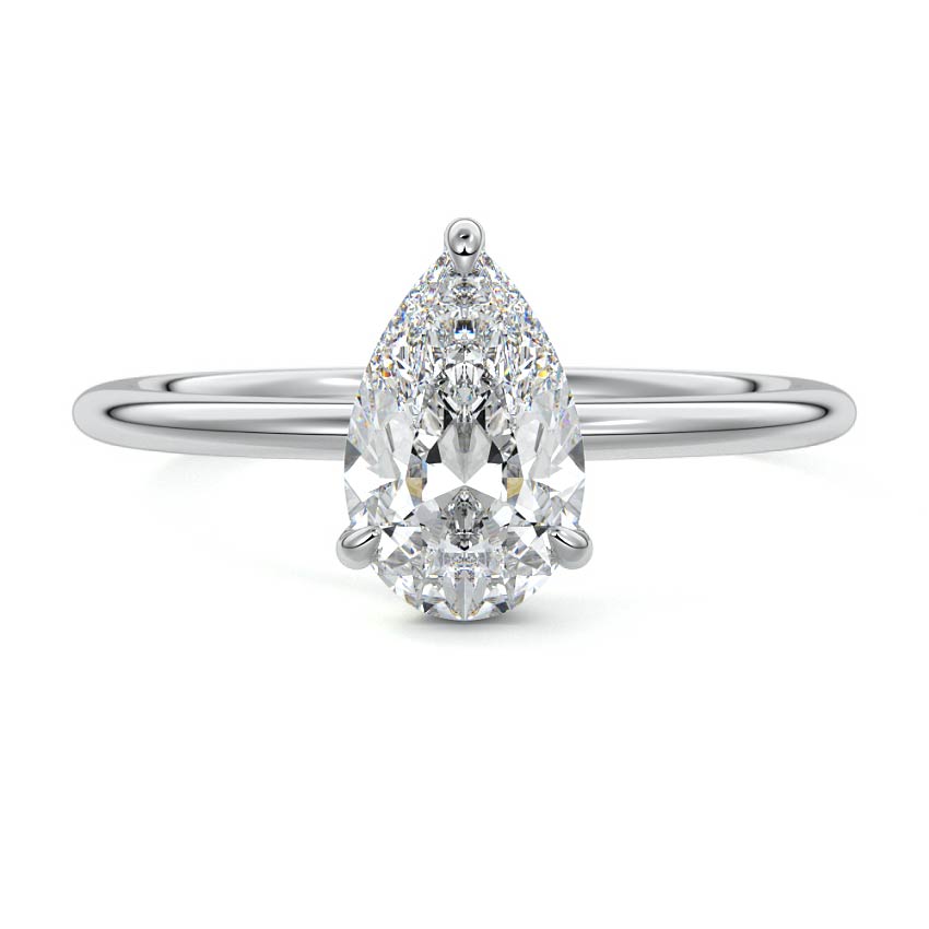 - Timeless pear silhouette that elongates and flatters the finger