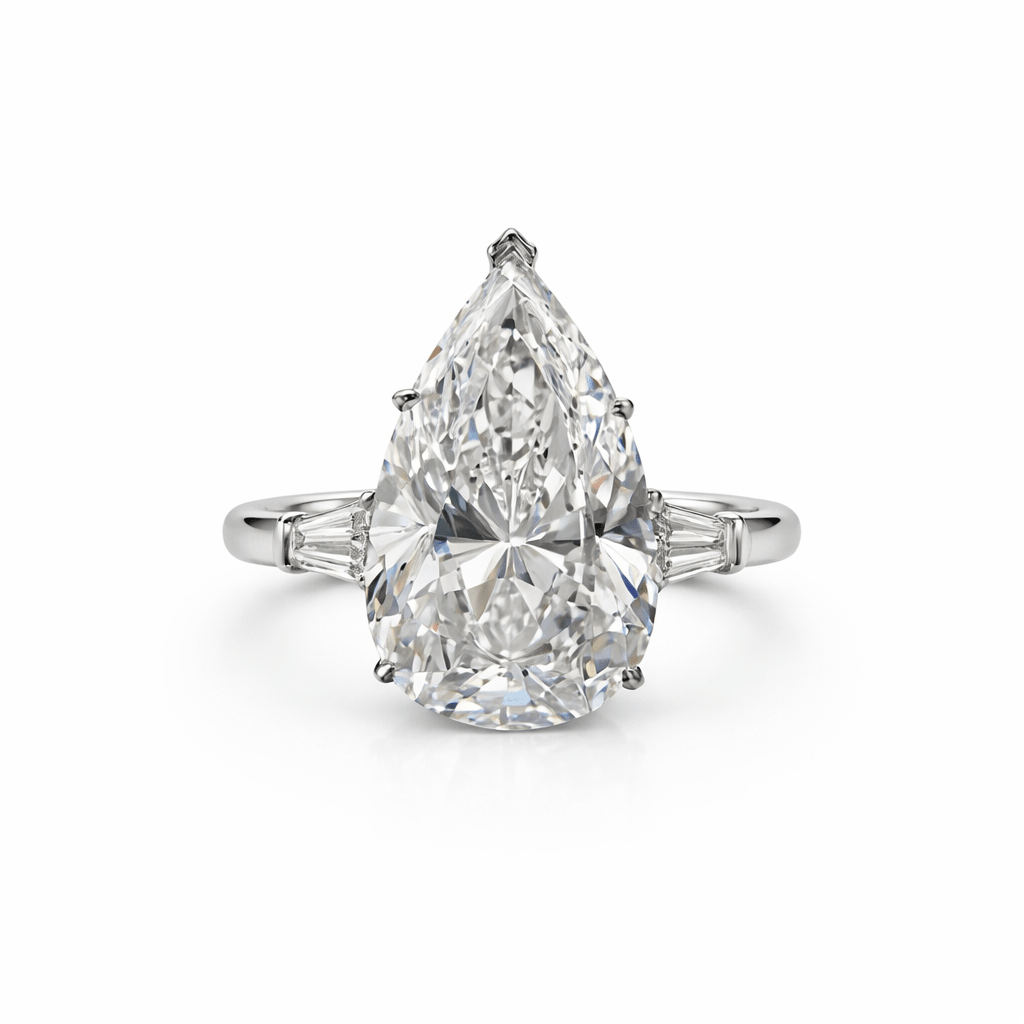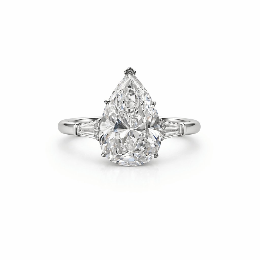 5 Carat Pear Cut Three Stone Engagement Ring 18K White Gold