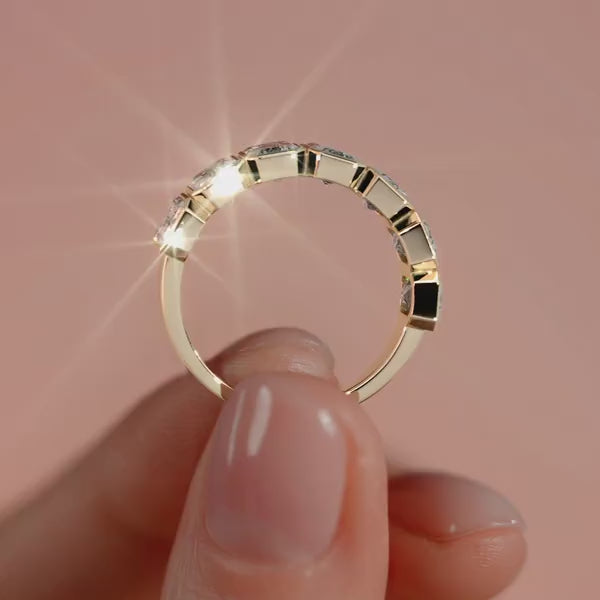 Nura - Half Eternity Bezel Emerald Cut Wedding Band