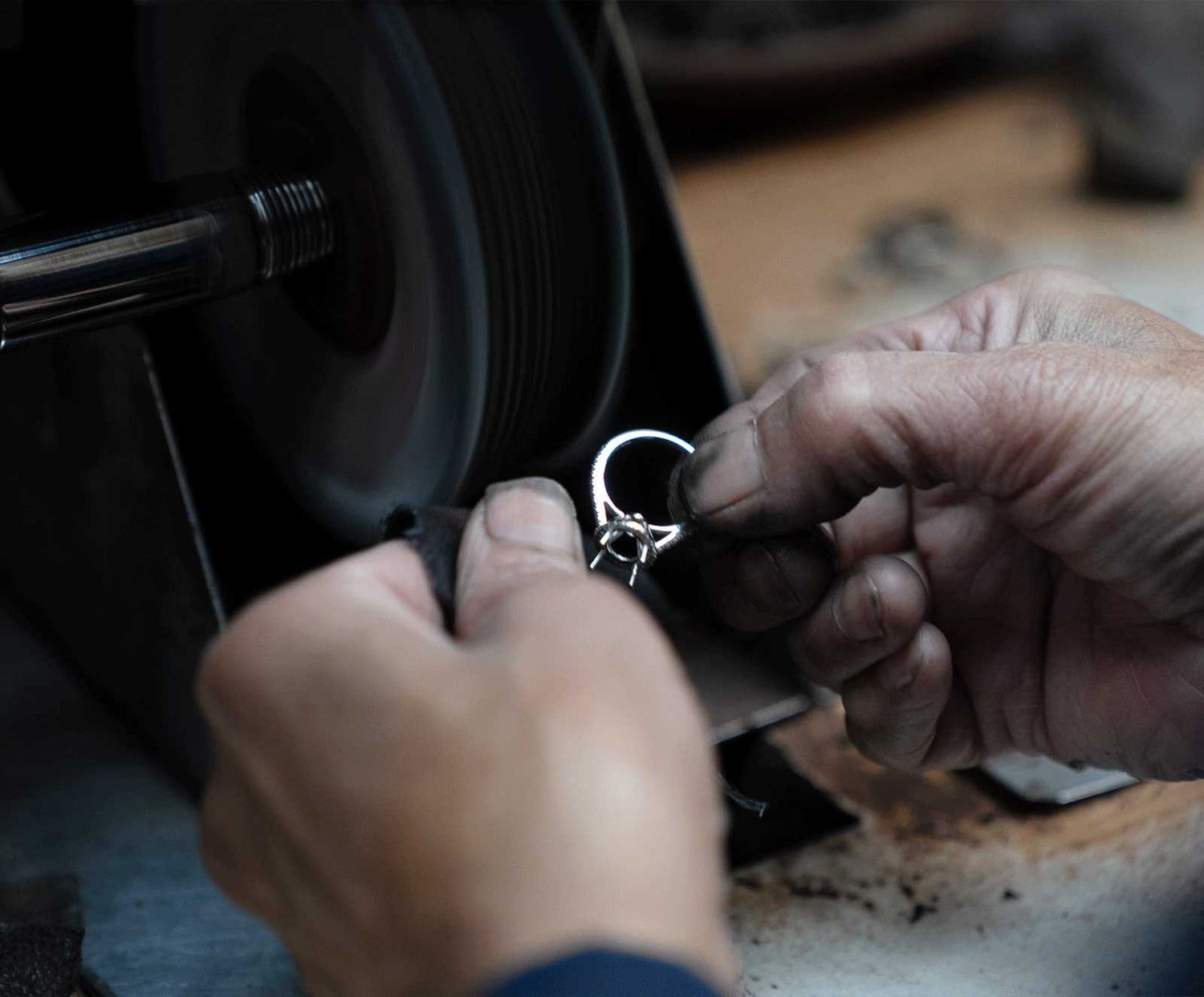 Polishing gives jewelry a refined finish and boosts its value. The process includes three steps: tumbling, pre-polishing, and ultra-cleaning. For pieces featuring diamonds, pre-polishing is essential before setting the diamond. This step ensures that the area beneath the diamond, which cannot be polished once the diamond is set, remains bright and does not dull the diamond’s shine.