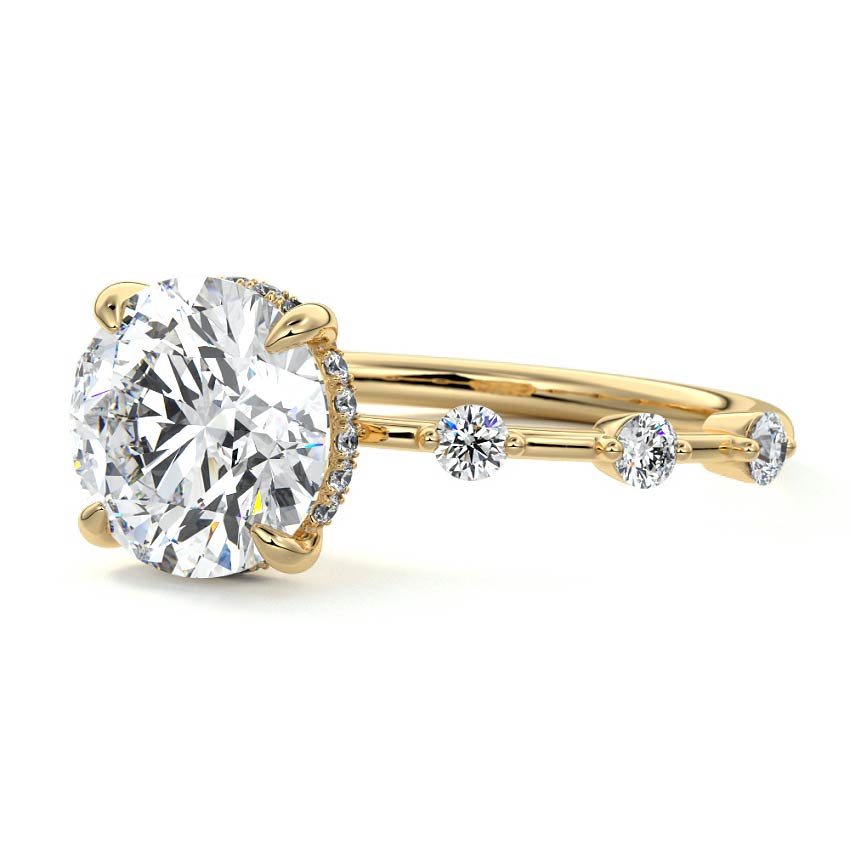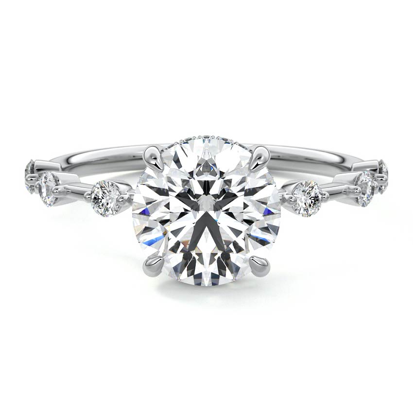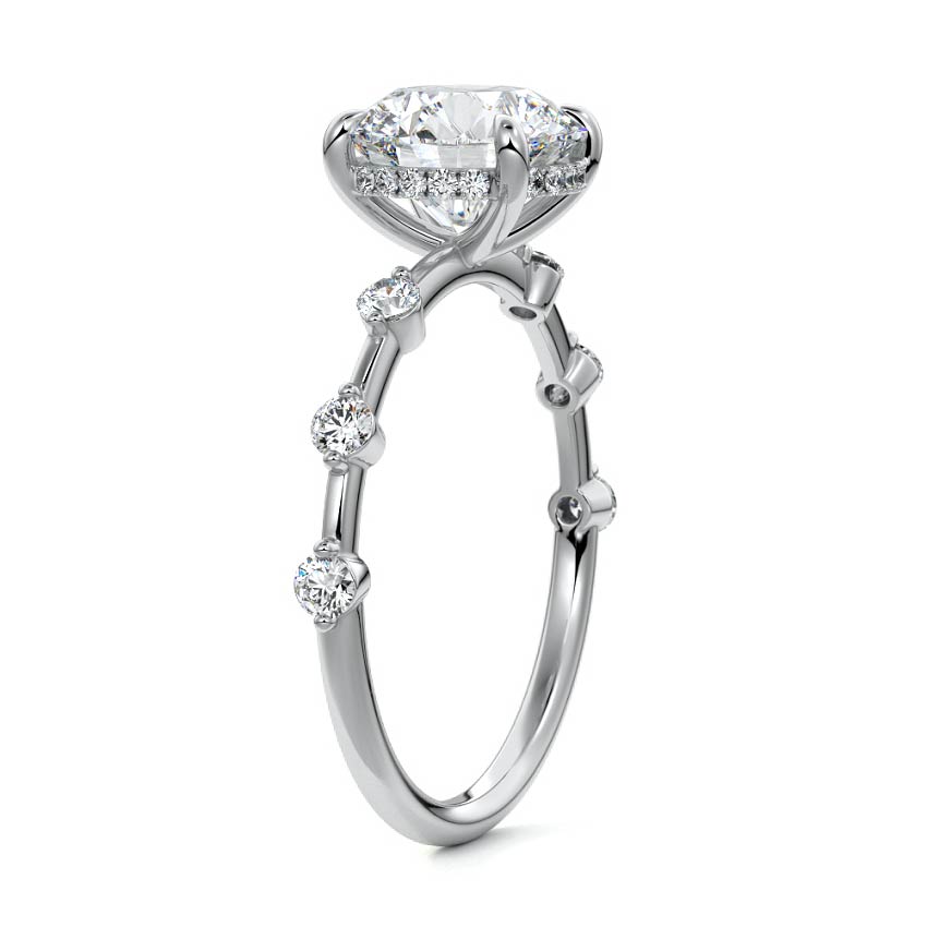 Side stone settings enhance the overall light reflection and create a more intricate visual presence. This style is ideal for those who desire additional brilliance without transitioning to a full pavé or halo setting.